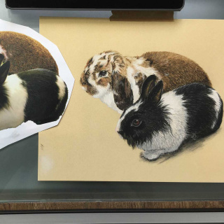 Doppeltierzeichnung (Ganzkörper) aus 2 einzelnen Vorlagenfotos.